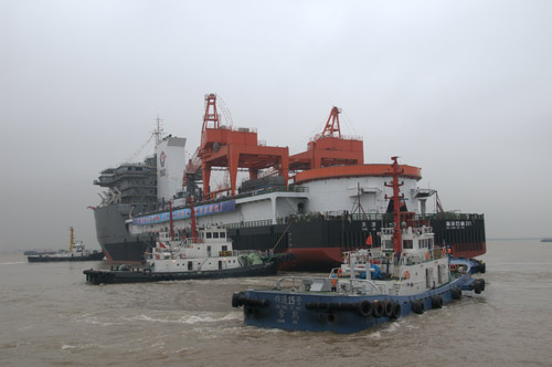 自主建造3000米深水鋪管起重船“海洋石油201”順利出塢